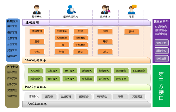 系统遵循《招投标法》、《政府采购法》、《电子招投标办法》等法律法规,程序式设置操作流程,严格控制人为因素对招投标活动的影响,保障各交易主体合法利益。平台SaaS架构关注所有驻户安全,无论招标代理机构数据体量大小均一视同仁。