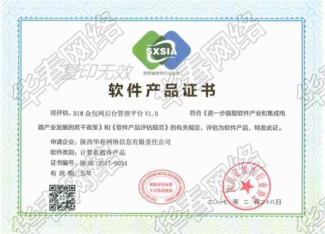 BIM众包网平台软件产品证书