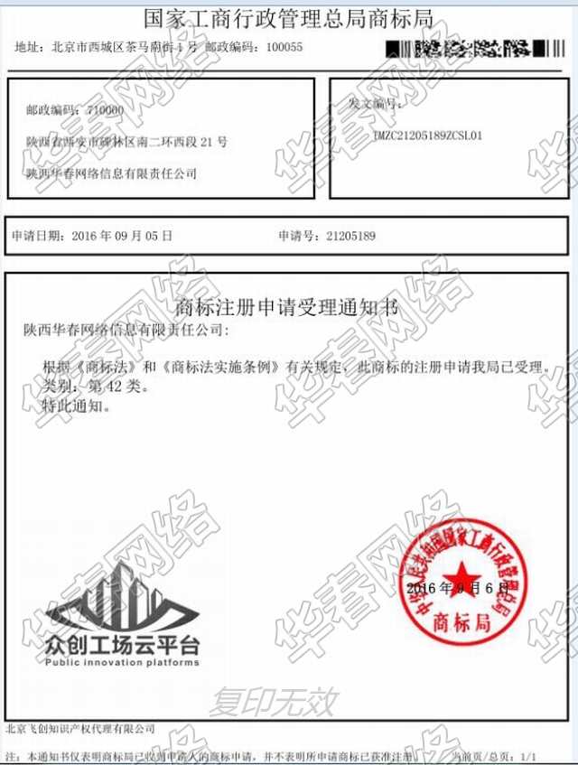 众创工场云平台商标